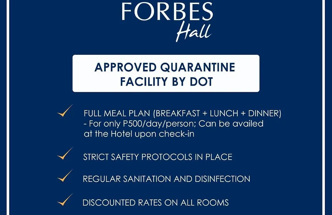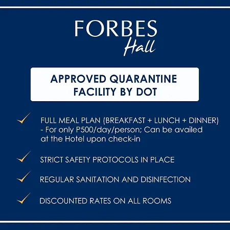 The Forbes Hall is located in the centre of Manila. Vincent's Place Kambingan Restaurant serving delicious dishes is around 500 metres away. The historic Minor Basilica and Metropolitan Cathedral of the Immaculate Conception is set within a few minutes' drive from Forbes Hall.